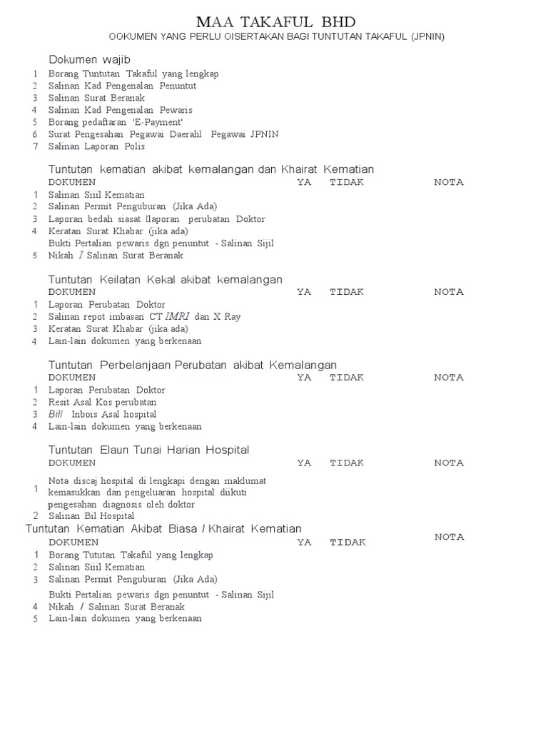 Borang Tuntutan Insuran Kemalangan Pdf